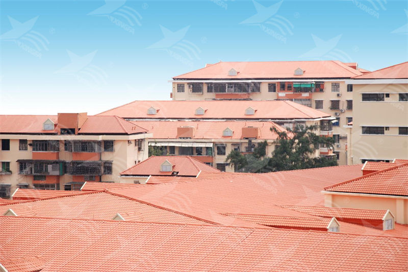 2、防水隔热:合成树脂瓦具有出色的防水、防漏、隔热等特性,可有效改善屋顶漏水问题,提升了居民的生活质量。其防水效果不仅令顶层住户受益,同时也?;ち朔课萁峁?,延长了建筑的使用寿命。